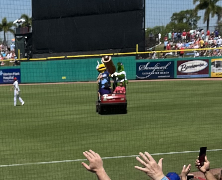 — the only thing I typed this week was kind of a bummer so let’s focus on this instead: my parents were in Florida for Spring Training last week and my mom texted me this picture of the Phanatic in midseason form with his hot dog cannon
